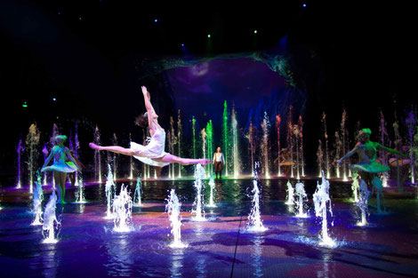 Installation of theatrical lighting and control systems at House of Dancing Water with White Light. This includes the installation at height of lighting and controls at Bubble feature.